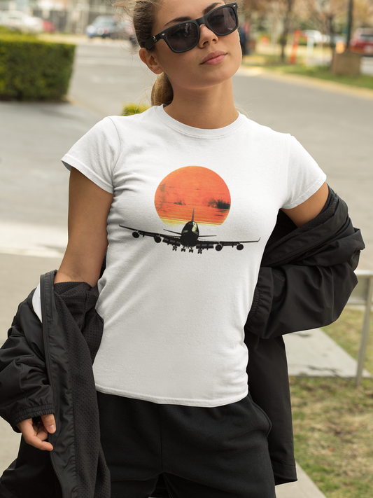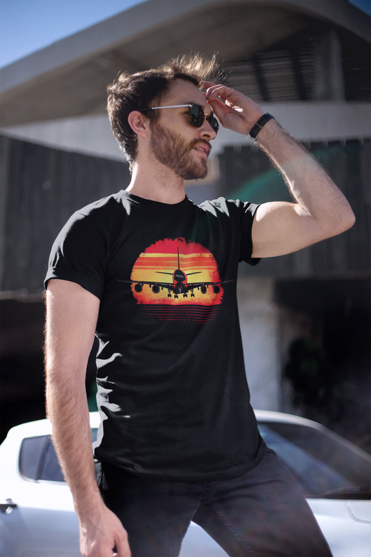 "747 Sunset Flight T-Shirt | Airplane Graphic Tee | Aviation Enthusiast Apparel"