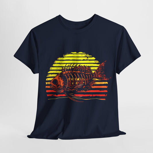 Fish Skeleton Sunset T-shirt Design - Artistic Nautical Graphic Tee | Soft Cotton | Perfect for Ocean Lovers