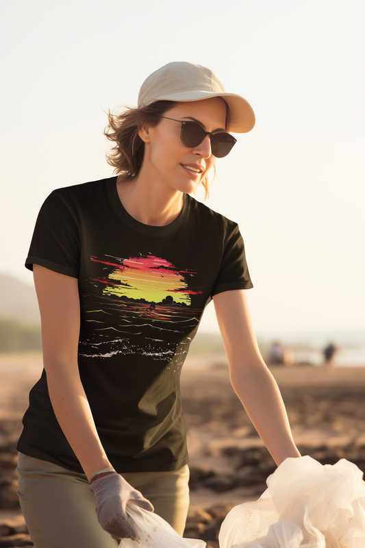 "Waves Sunset Tee – Surf-Inspired Ocean Graphic Shirt"