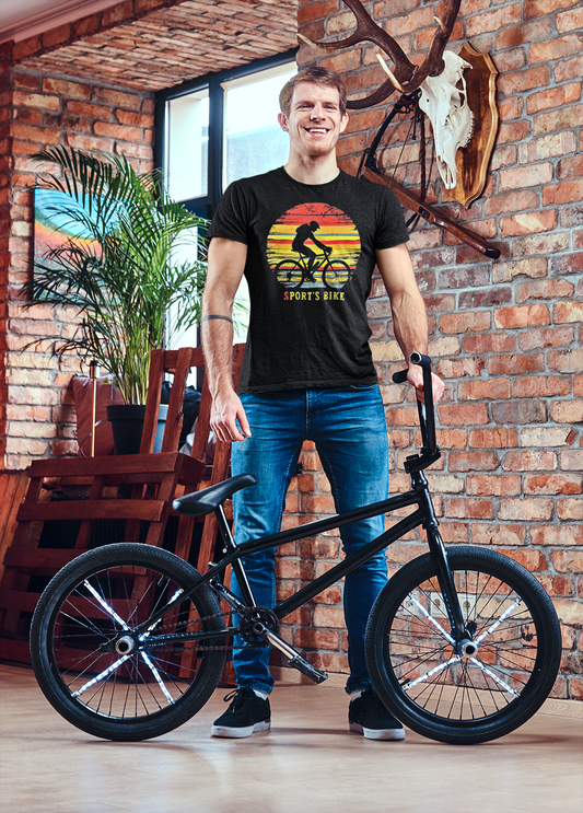 "Sport's Sunset Biking T-Shirt ā Dynamic Cycling Graphic Tee for Active Riders"