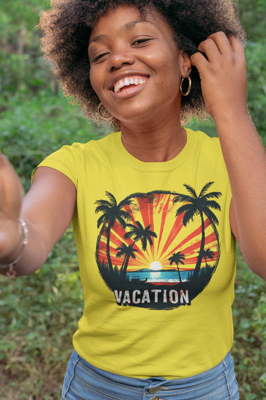 Escape to paradise with our Sunset Vacation T-shirt Designs Collection. This exclusive lineup captures the warmth and tranquility of golden sunsets, paired with designs that reflect the perfect vacation vibes. Whether you're lounging by the beach, exploring coastal towns, or just dreaming of your next getaway, these tees blend comfort with style. Each design showcases stunning sunset imagery, from palm trees swaying in the breeze to sailboats drifting into the horizon. Crafted from premium cotton, these t-shirts are not only soft and breathable but also durable, making them perfect for your adventures.