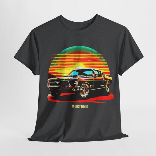 "Mustang Classic Sunset T-Shirt - Vintage Muscle Car Graphic Tee, Retro Auto Apparel"