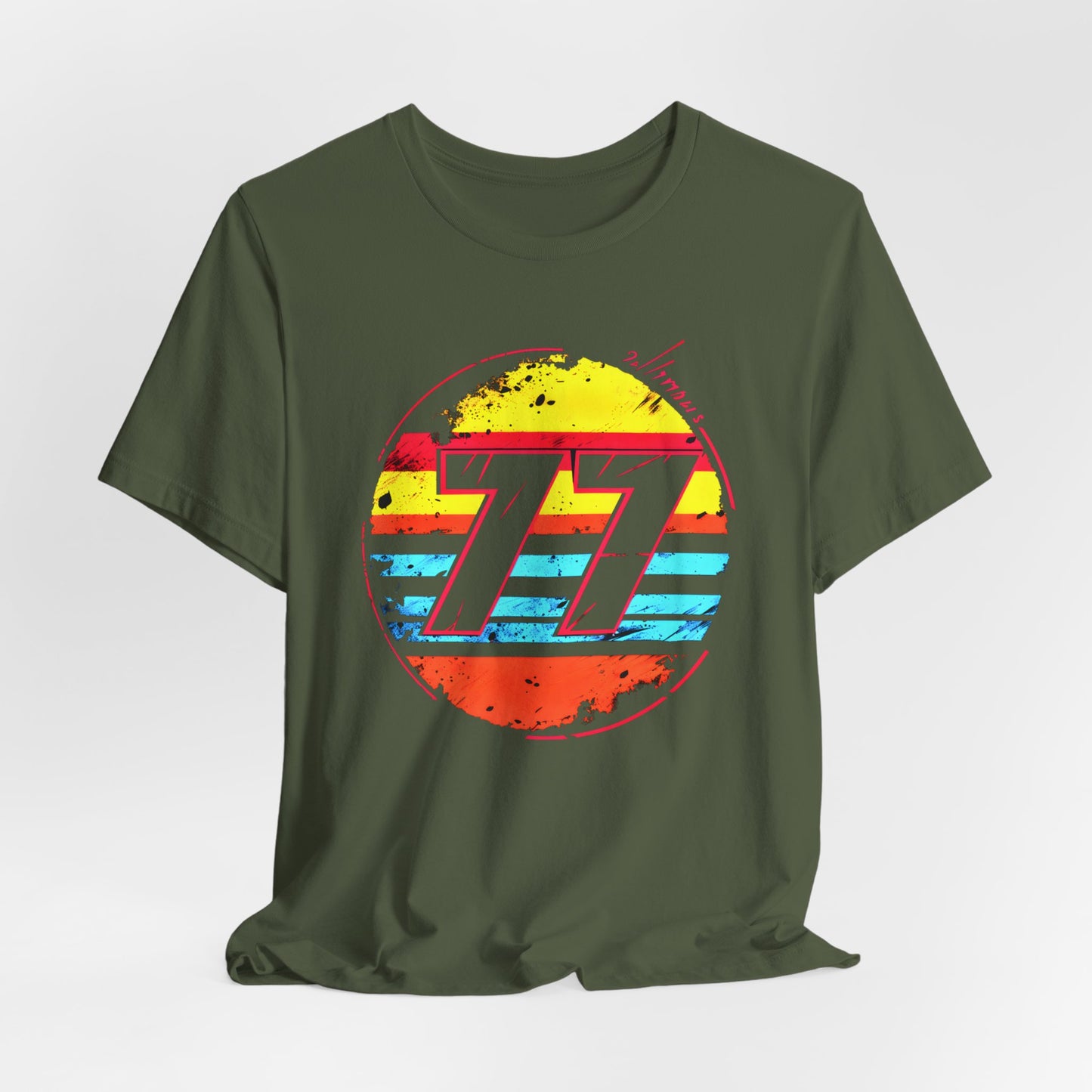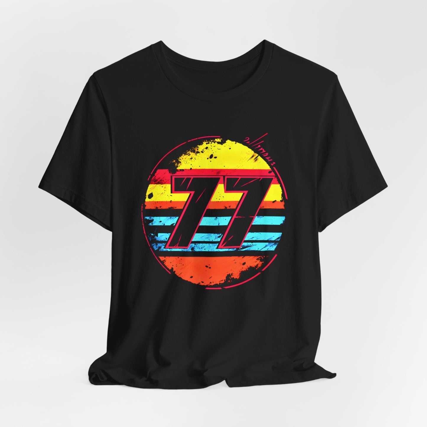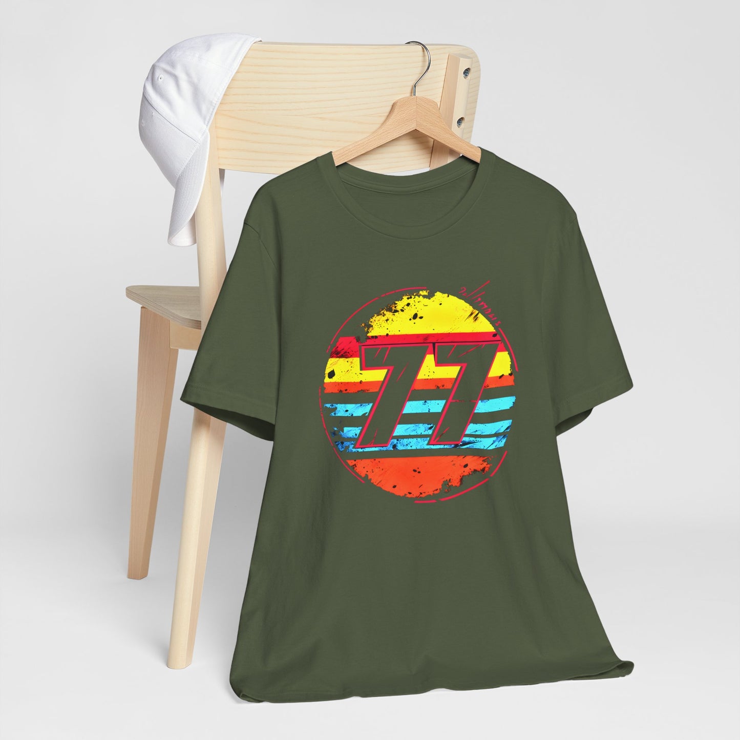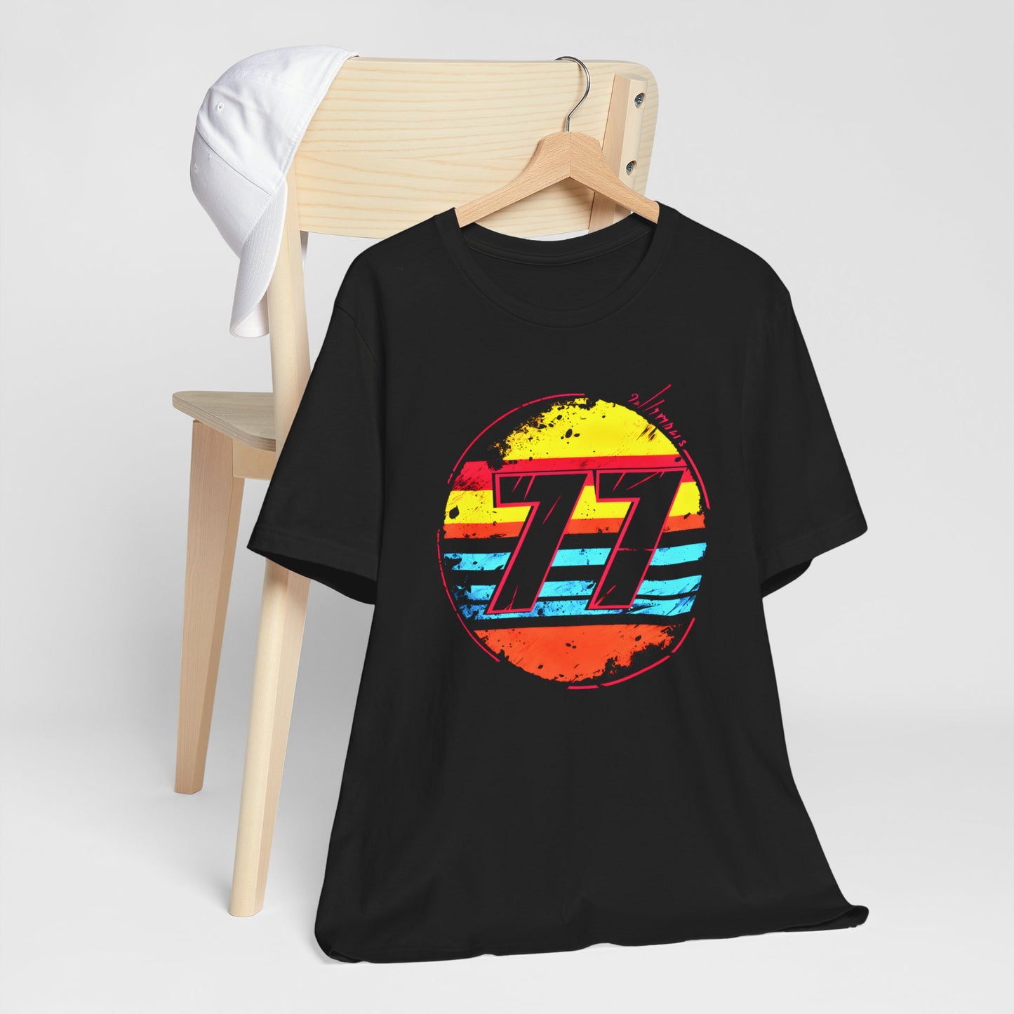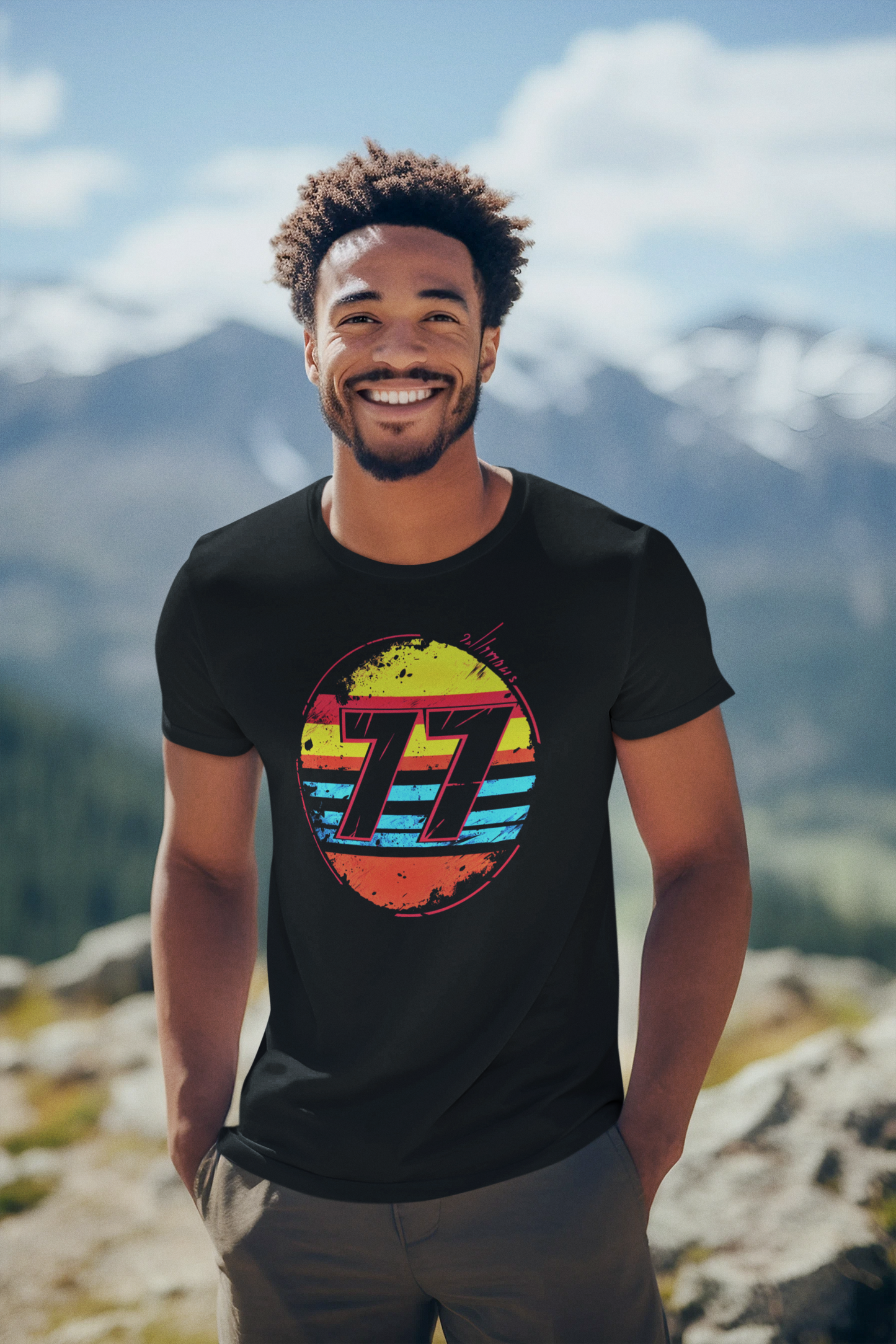 Embrace good fortune with the Lucky "77" Number T-shirt, ideal for both men and women. Crafted from ultra-soft, premium cotton, this tee ensures maximum comfort and durability. The bold "77" graphic adds a touch of luck and style to any casual outfit. Available in multiple sizes, it's the perfect addition to your everyday wardrobe.