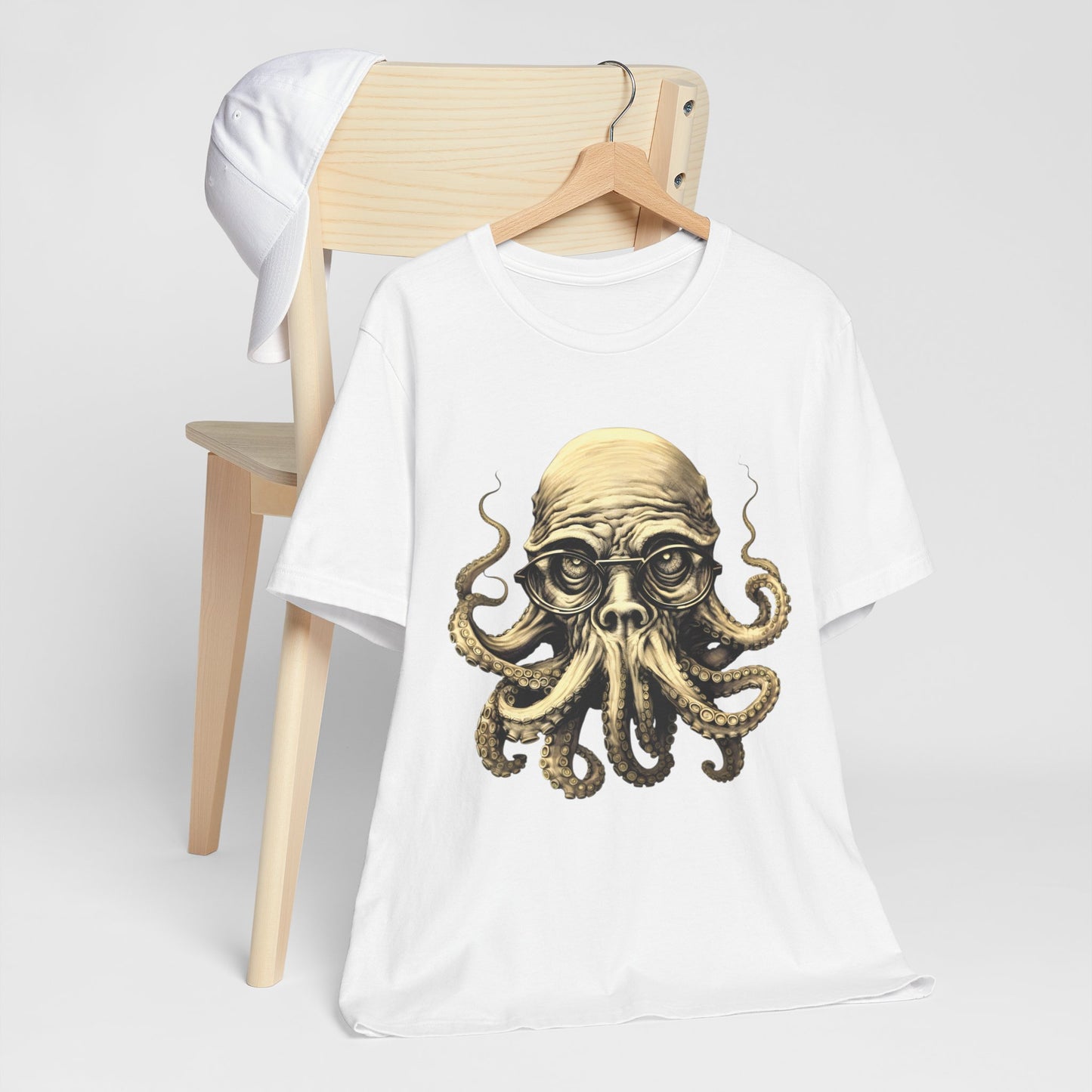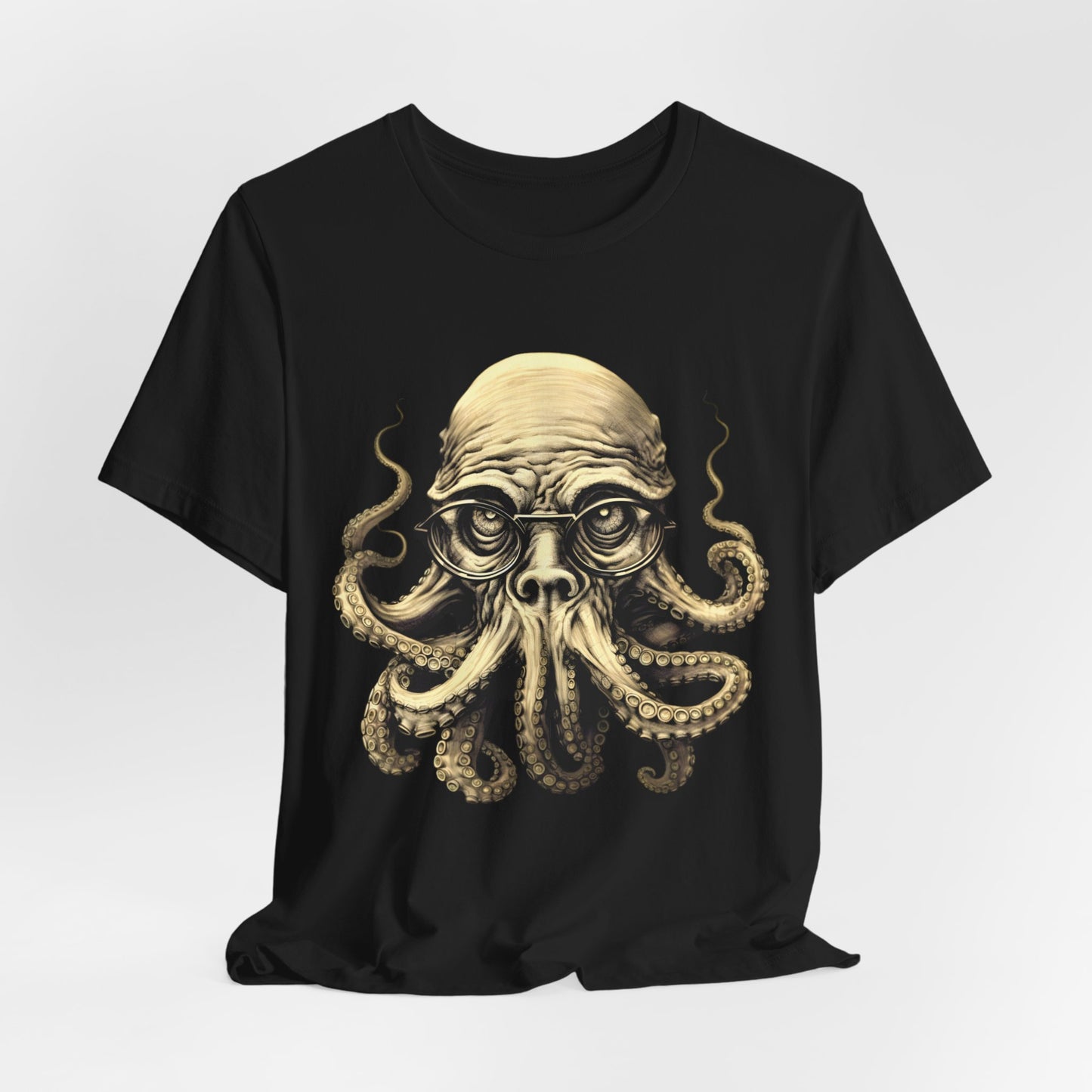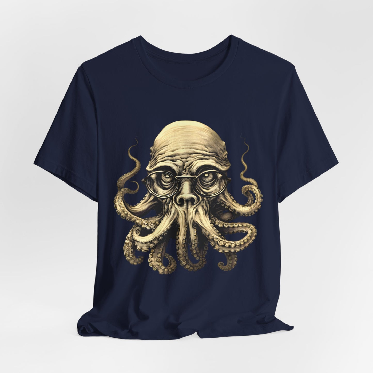 Crafted from soft, high-quality cotton, this T-shirt offers a comfortable and relaxed fit, ideal for everyday wear. The detailed illustration focuses on the intricate patterns and expressive eyes of the octopus, showcasing its intelligence and grace.