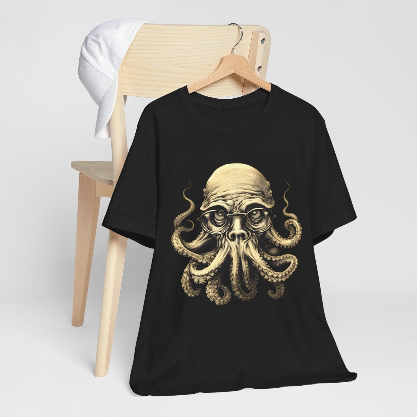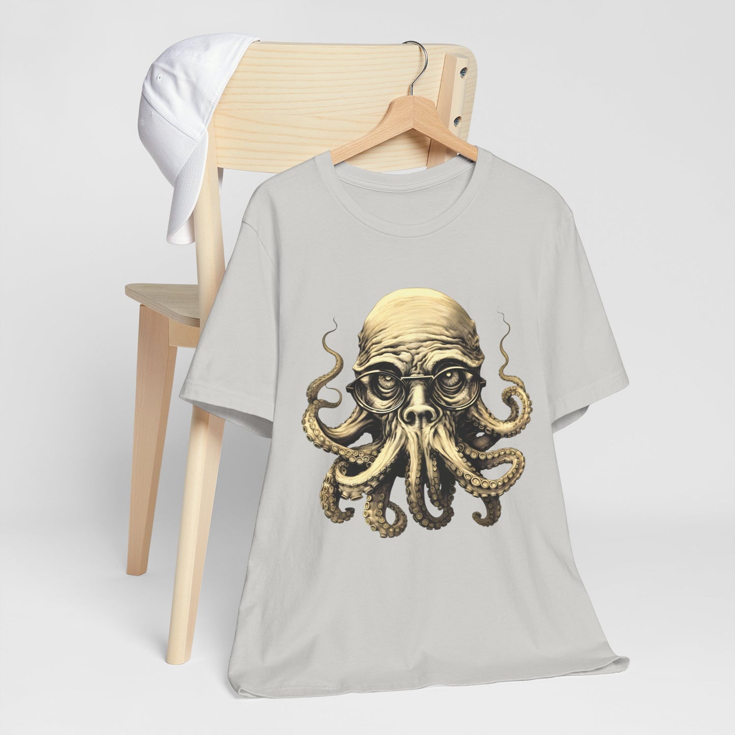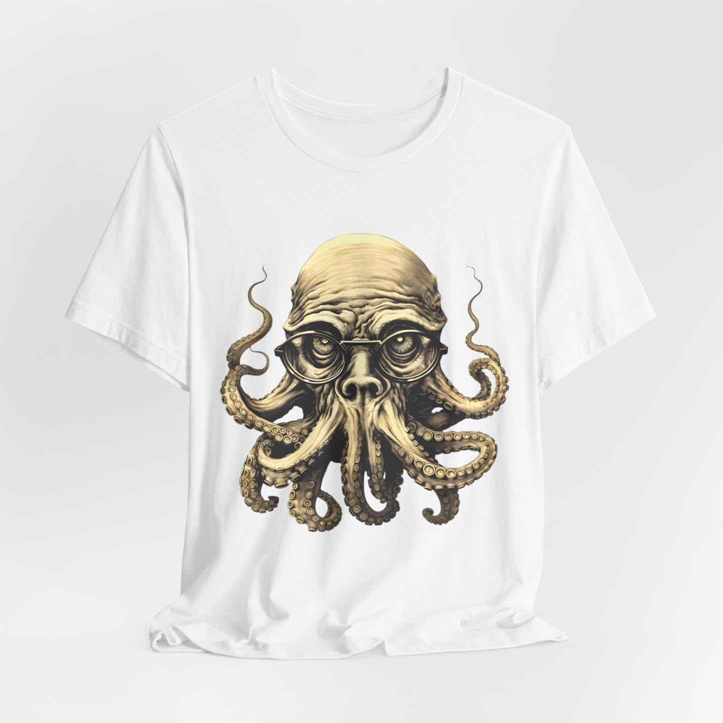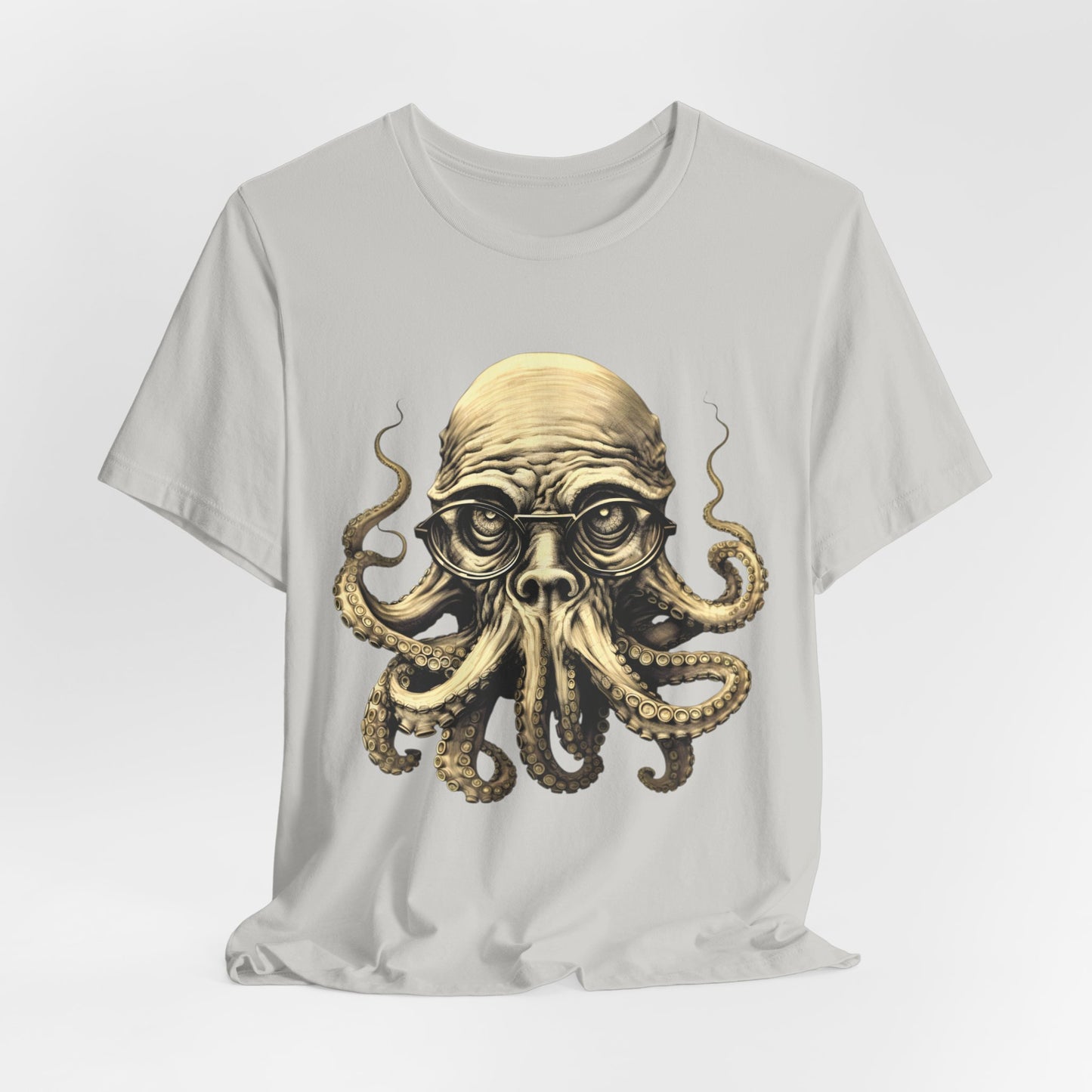 Crafted from soft, high-quality cotton, this T-shirt offers a comfortable and relaxed fit, ideal for everyday wear. The detailed illustration focuses on the intricate patterns and expressive eyes of the octopus, showcasing its intelligence and grace.