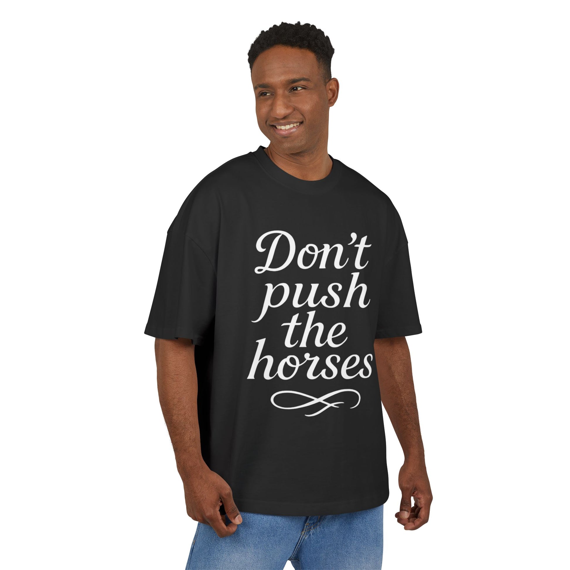 Unisex Heavy Cotton Tee - "Don't Push the Horses" Graphic Tee, Funny Gift, Casual Wear, Unique Tee for Horse Lovers, Streetwear Style
